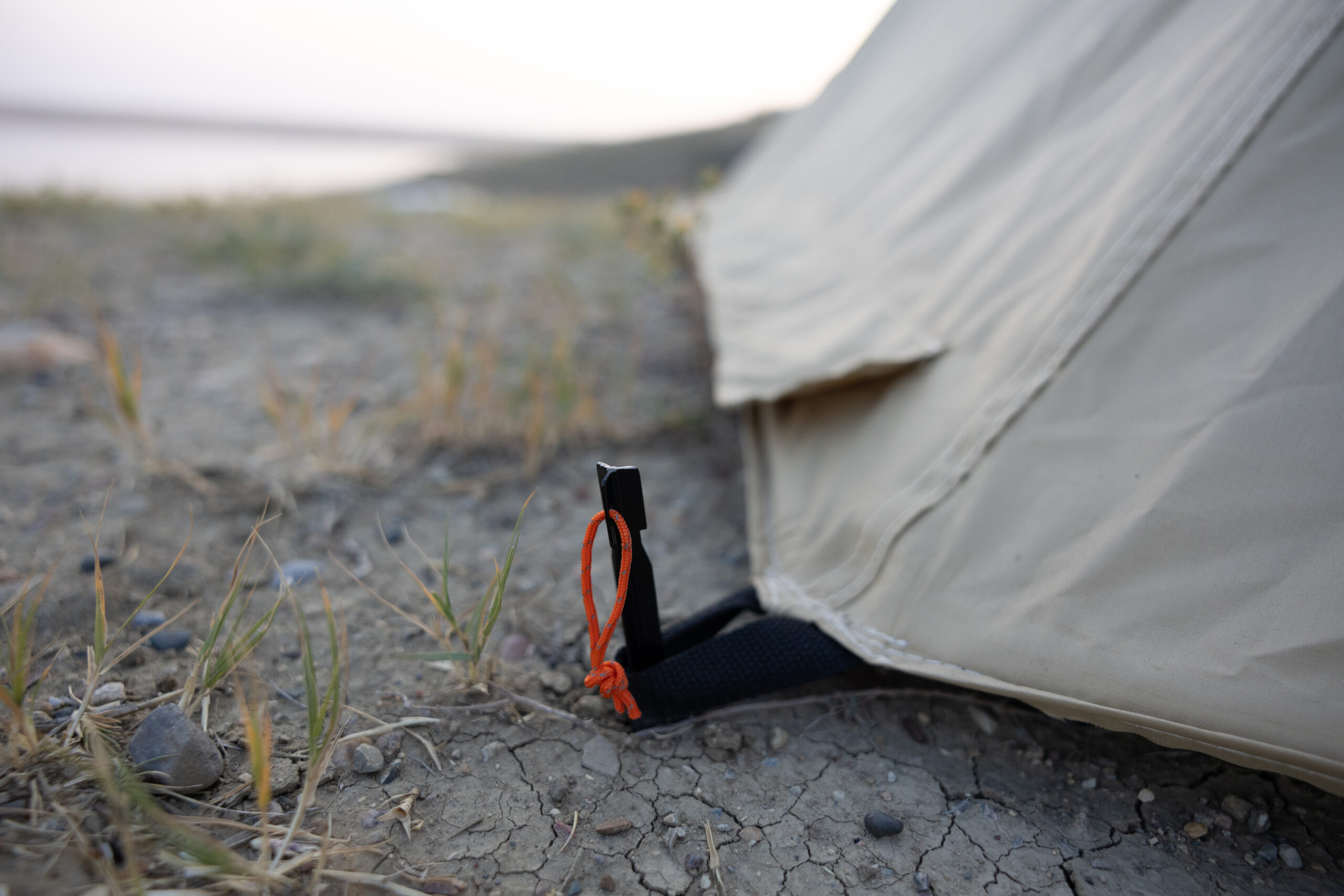 1/4″ reflective black guy lines with aluminum tension adjusters.