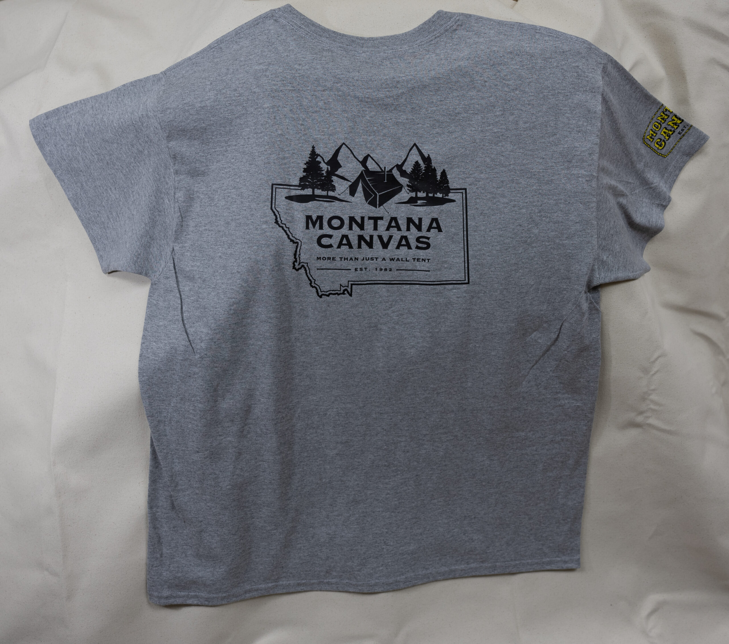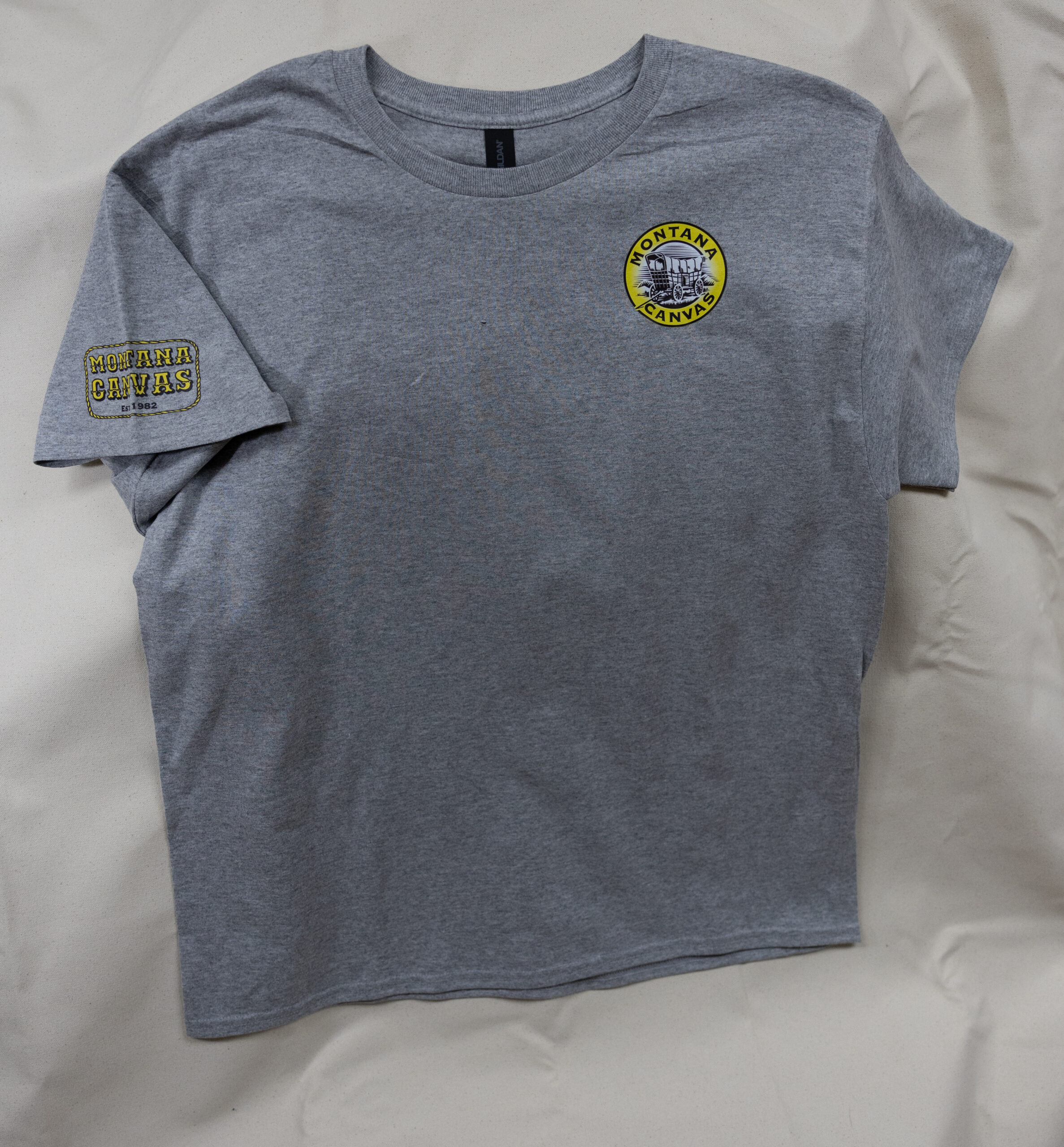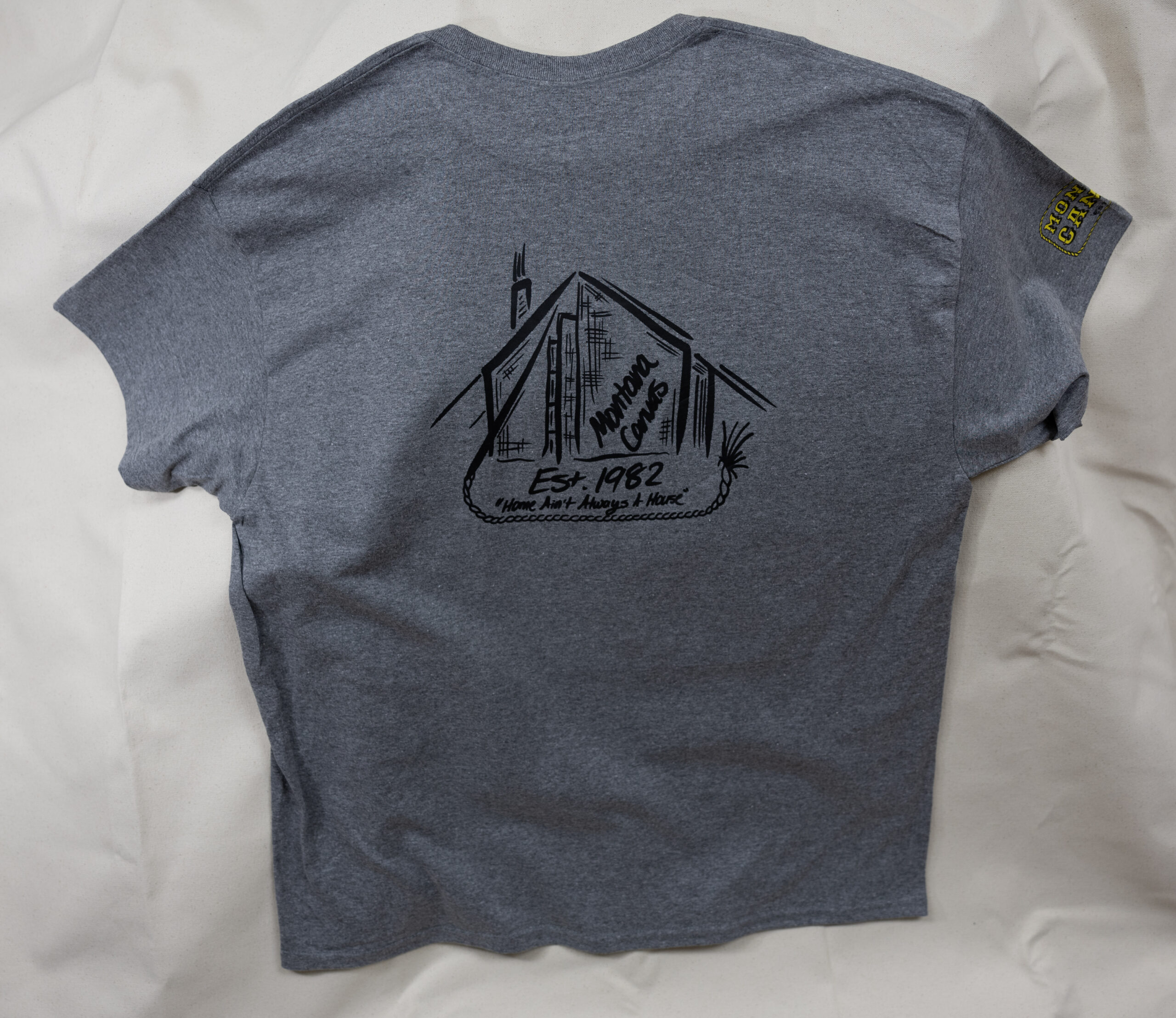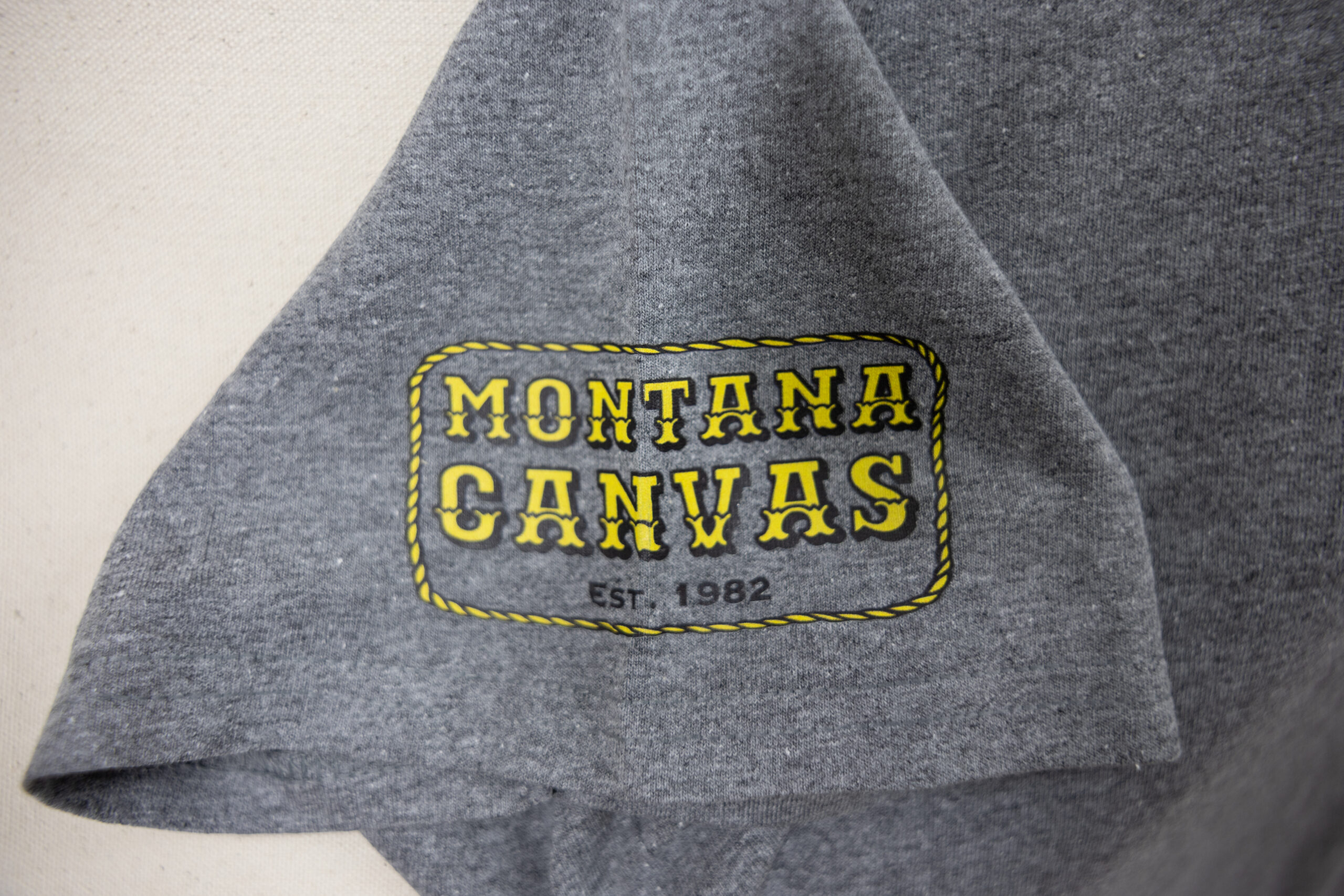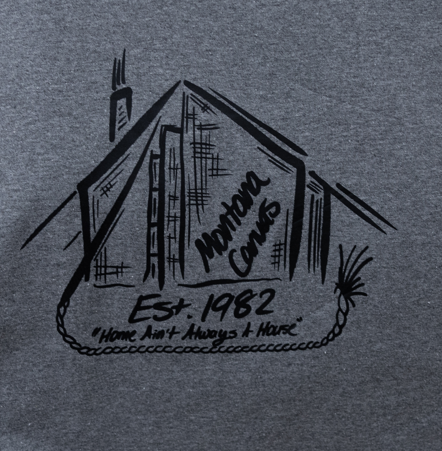 Montana Canvas T-Shirts printed on Gildan DryBlend. Comes with the classic wagon logo on the chest, our 1982 logo on the sleeve, and your choice on our “Montana outline” logo or our “House ain’t a home” logo on the back.