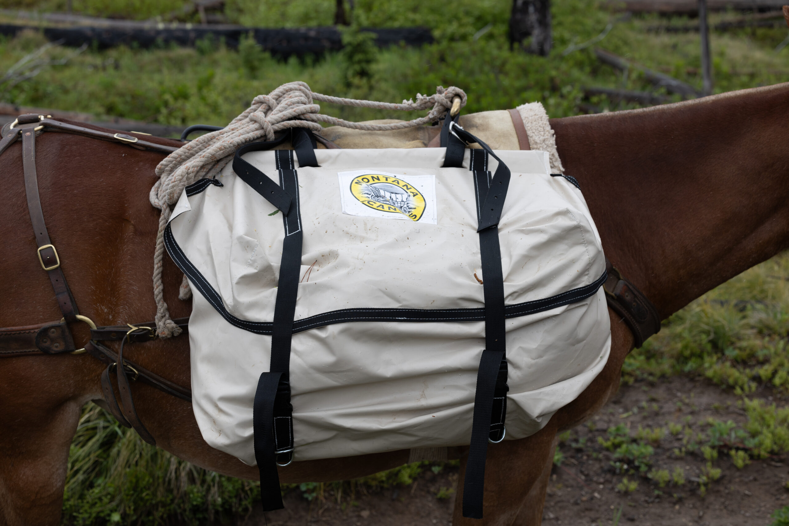 Pack Panniers bag dimensions: (fits sawbuck or Decker-style pack saddle) Length- 29″, Height – 18″, Width – 14″ D-rings provided to accommodate a variety of harnessing methods. Sold as a pair